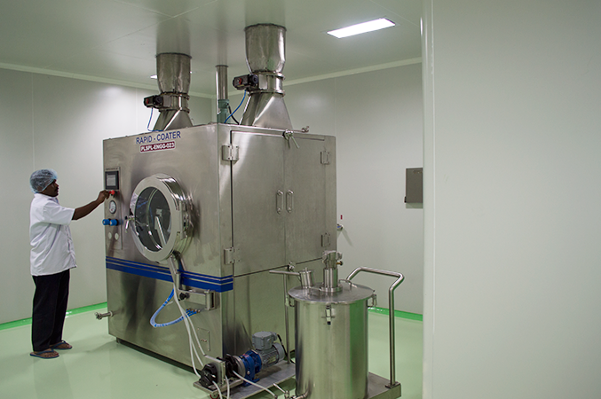The facility is equipped with latest and high-speed machinery for manufacturing solid dosage forms. It has a unidirectional flow of materials and separate quarantine areas for each stage of manufacturing providing complete segregation and security of materials at each stage. The people movement and material movement are totally segregated. All the surfaces of walls, ceilings and floor are of hard and impervious materials. The critical manufacturing areas are treated with epoxy resin material leading to total crevices free environment. Manufacturing and packaging activities are totally segregated from material and people movement point of view.